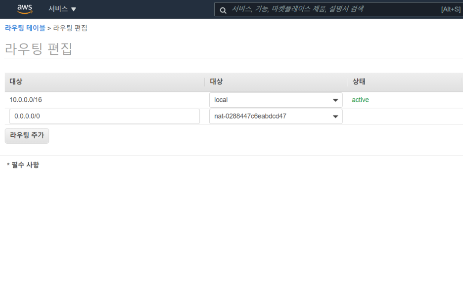 위에서 생성한 NAT 게이트웨이 넣어준다