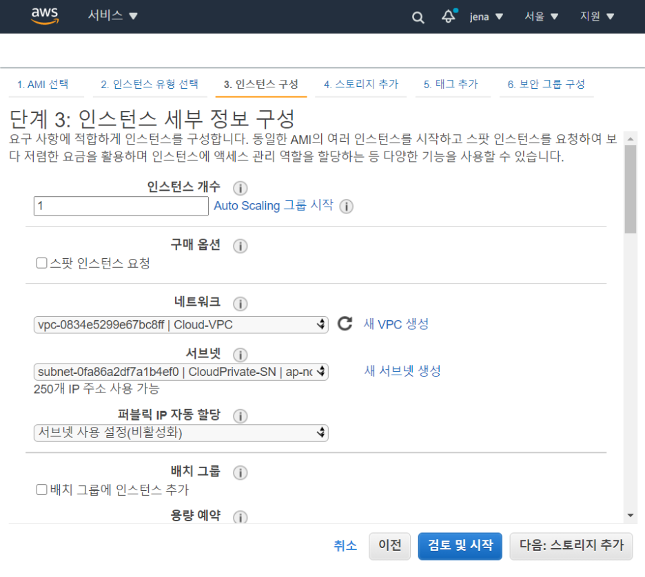 네트워크는 위에서 생성한 VPC를 넣어준다