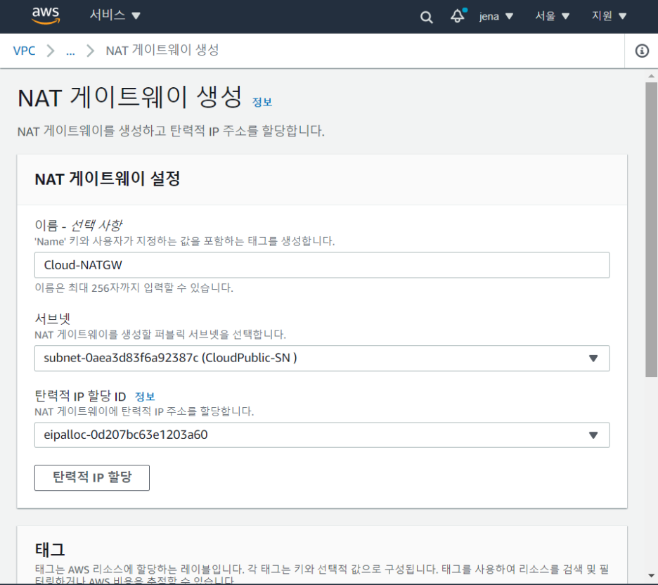 VPC > NAT 게이트웨이