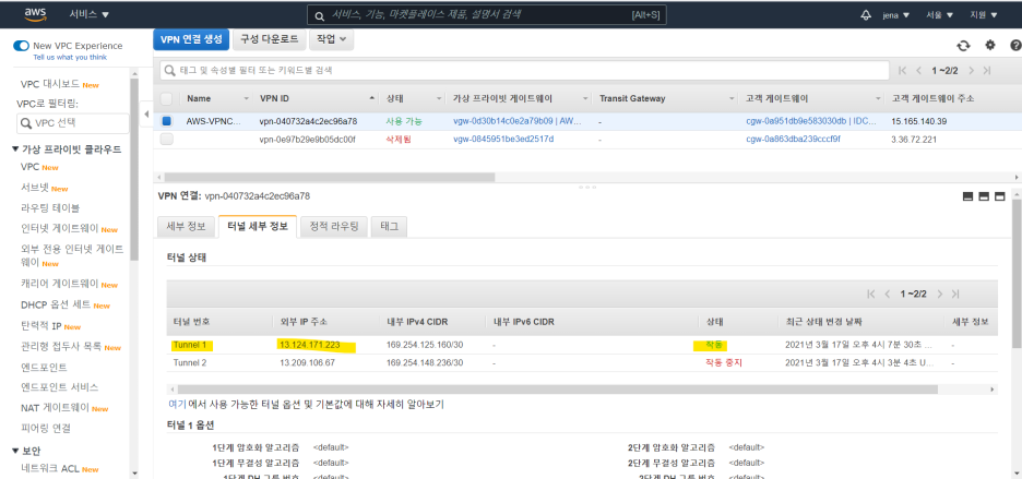 · AWS-VPC에 가상 프라이빗 게이트웨이를 둬서 VPN 터널을 뚫어서 인터넷을 경유하지 않고 VPN을 통해 서브넷끼리 연결할 수 있도록 하겠다.(프라이빗, 퍼블릭 서브넷 모두)
