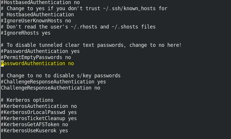 #PasswordAuthentication yes : 원격접속할 때 비밀번호 인증을 사용 여부를 정의함.